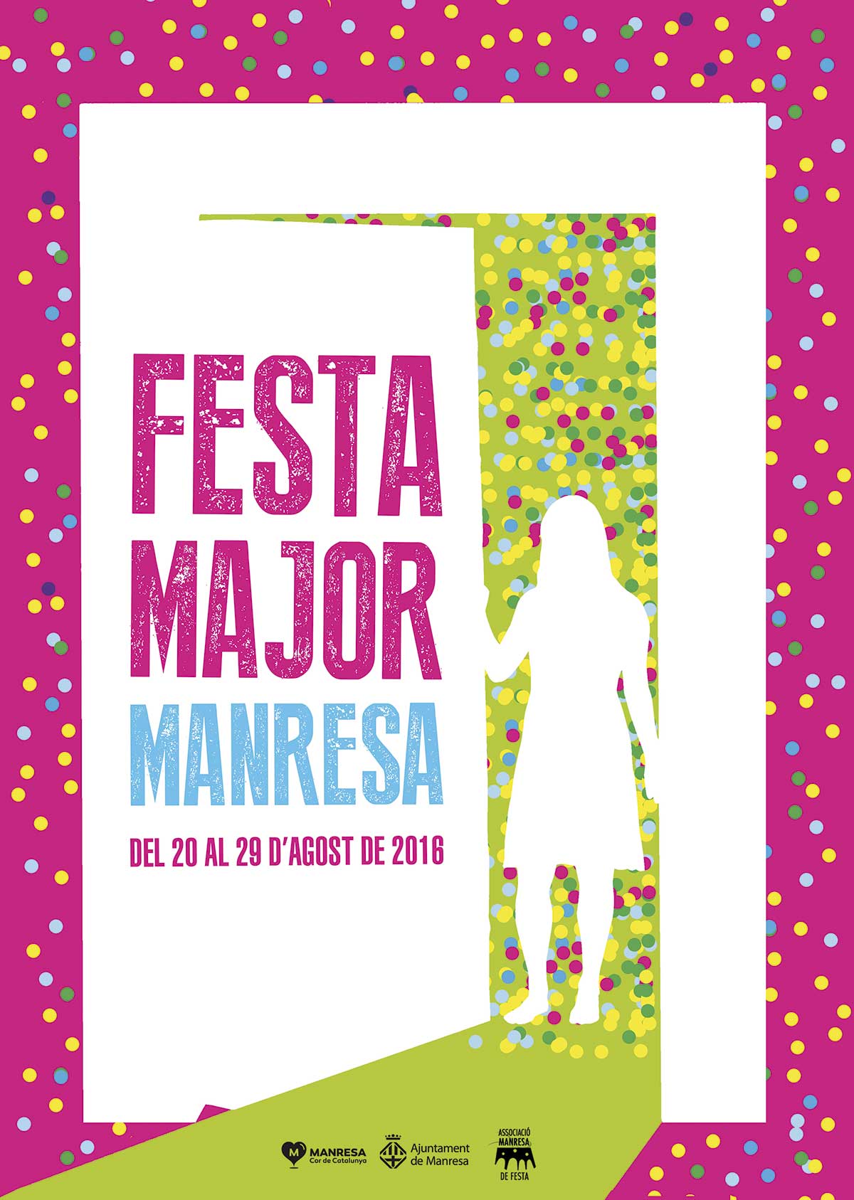 El primer diumenge després del darrer dissabte d’agost es celebra la Festa Major de Manresa.La seva ubicació a finals d’agost o primers de setembre, l’han convertida en una festa de final de vacances amb una participació multitudinària en molts dels seus actes. L’origen de la festa cal anar a buscar-lo a 1372, any en què foren traslladats els Cossos Sants -les relíquies de Santa Agnès, Sant Fruitós i Sant Maurici, patrons de la ciutat. Els actes tradicionals són el Pregó, la cercavila amb els gegants i nans, la tronada a la Plaça major, el castell de focs i l’ofici solemne -al qual les autoritats acudeixen en comitiva des de l’Ajuntament-, s’han anat mantenint durant molts anys. Altres actes més moderns han adquirit ja l’etiqueta de tradicionals, com són el correfoc -amb personatges recuperats com la Víbria, el Bou de fusta i les colles de diables- el correaigua i els balls a diverses places públiques que vénen a substituir els antics envelats.