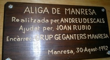 La primera àliga que hi ha documentada a Manresa nasqué de resultes de l’encàrrec que els consellers de la ciutat van fer a Miquel Vilella, prevere, escultor i beneficiat de la Seu. No es coneix la data exacta, però si que es té constància que, a primers de maig de l’any 1593 hi estava treballant i molt probablement la tindria en estat molt avançat. L’estrena o debut d’aquesta figura de peu es produeix la diada de Corpus del mateix any.